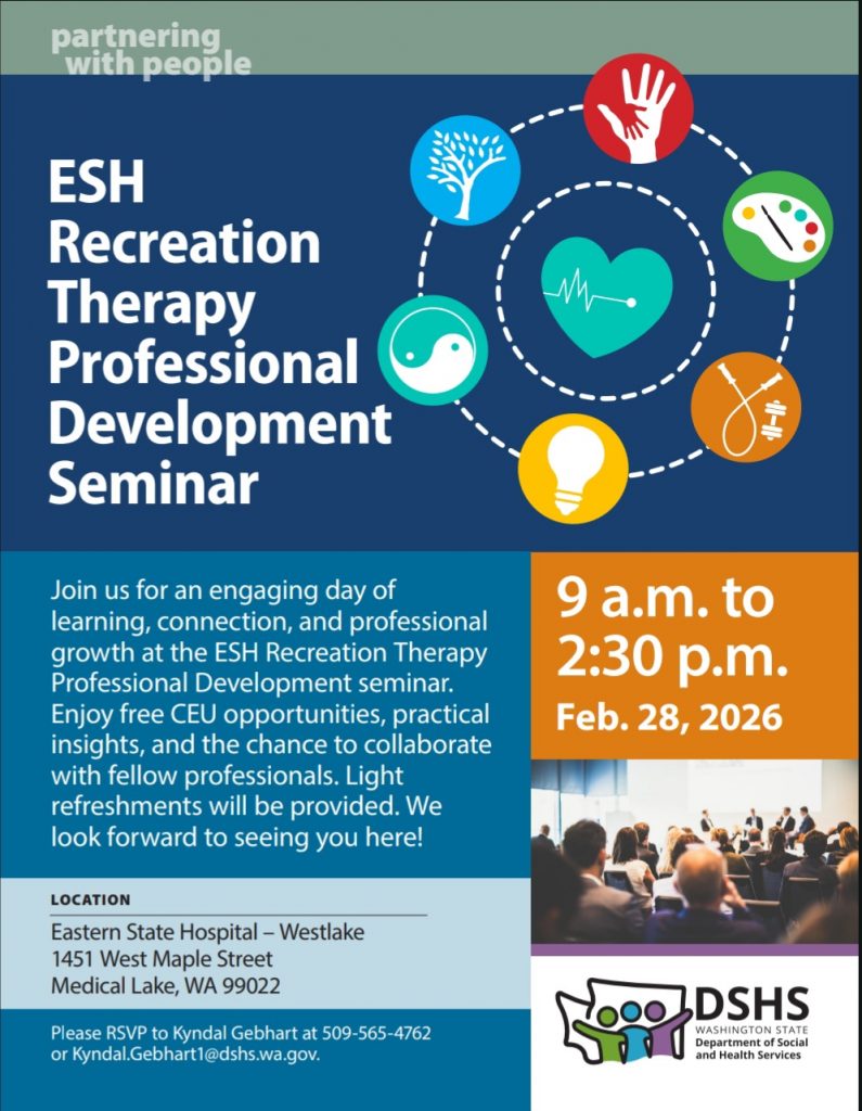 Spokane, WA, 9am-2:30pm, email Kyndal.gebhart1@dshs.wa.gov or call 509-565-4762 for RSVP. You may still attend without an RSVP but it is preferred.